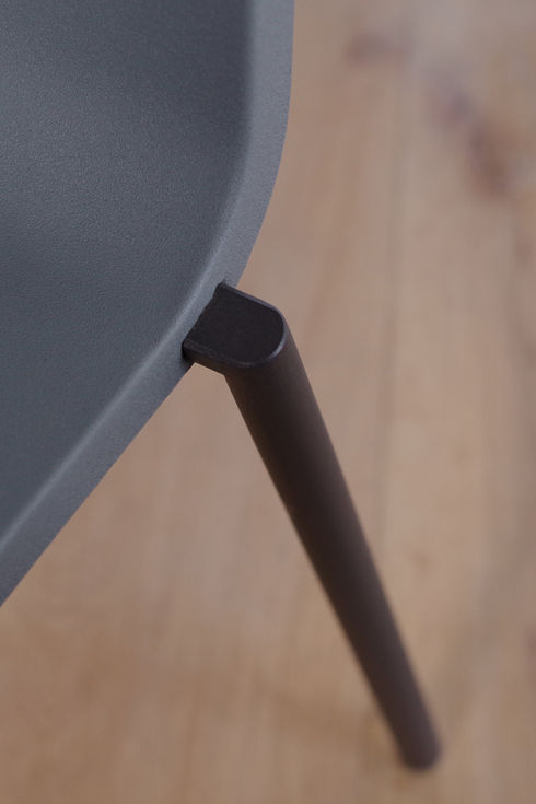 自身の工房MVSで製作していたアルミ製のチェア「CN°II」が原型となっています。その直線的なデザインとは対照的に、ポリウレタン製のシートが適度に柔らかくしなやかで非常に快適な座り心地です。ご自宅でのご使用はもちろんのこと、スタッキングもできるのでオフィスでミーティングチェアとしてご活用いただくのもオススメです。