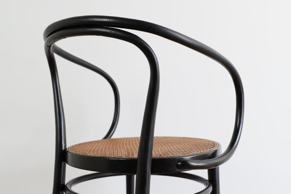 ル・コルビュジエも愛用していたModel.209。第二次世界大戦後にヨーロッパ各地に枝分かれした生産工場によってアームの形状に違いがありますが、この無理のない自然なフォルムのアームはドイツ・トーネット社ならではです。片手で持ち上げられるほど軽量ですが非常に丈夫で、籠目編みの籐座面が程良い弾力で優しく体を受け止めてくれます。