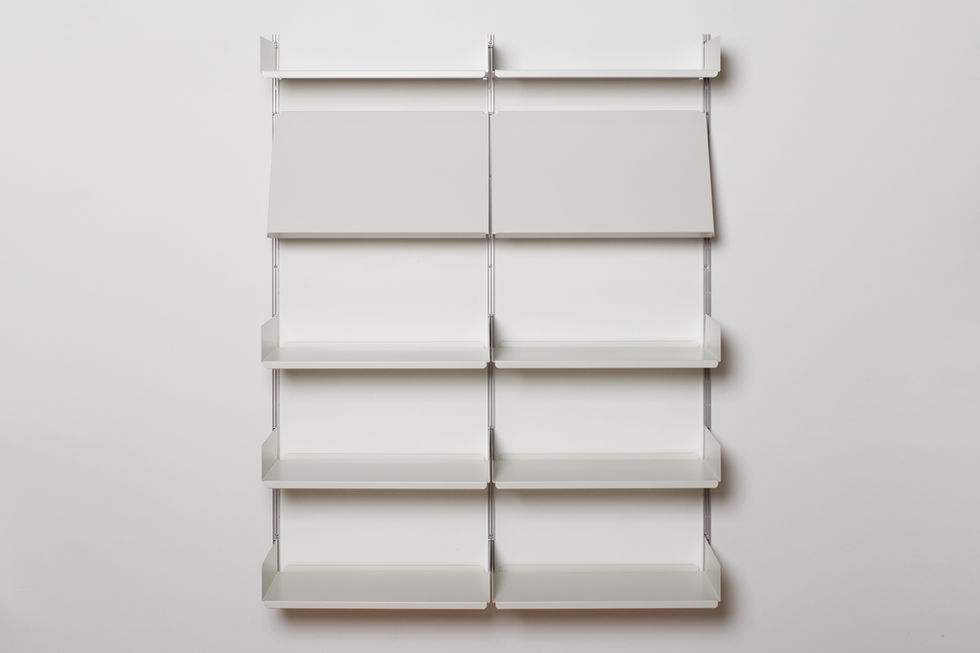 壁面に固定したレールに様々なサイズのシェルフやドロワーを自由に設置できる画期的な壁面収納システム。シェルフは専用のピンで引っ掛けるだけなので組み替えや増設も簡単に行えます。リビングからキッチン、ワークスペースまで用途に合わせて様々なシーンでお使いいただけます。