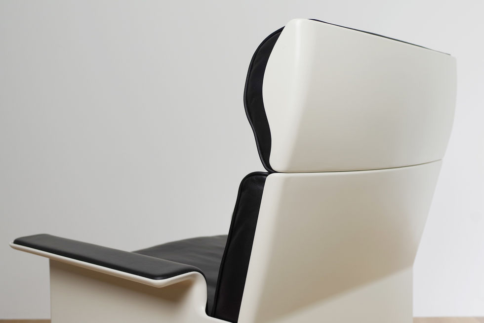ドイツ人プロダクトデザイナー、ディーター・ラムスが1962年にデザインしたヴィツゥ社の620チェアプログラムのハイバック1シーター&フットスツールのセットです。パネルカラーはオフホワイト、シートはブラックレザー(本革)になります。
