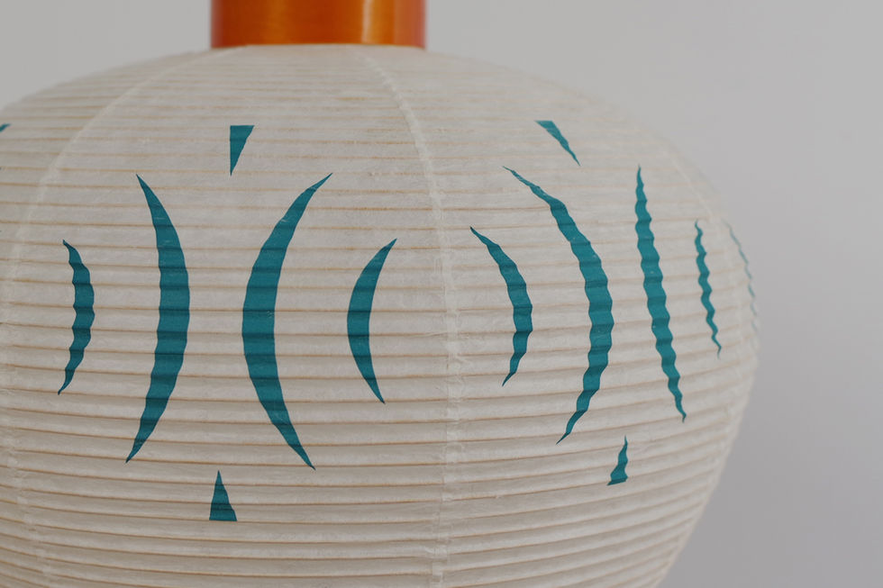 こちらは2004年にイサム・ノグチ生誕100周年記念として限定発売されたモデルの内のひとつで、その後オゼキ社の定番モデルにはラインナップされなかった希少モデルです。絵柄はブルーグリーンカラーで、モデル名「3AV」のVはViridian(ビリジアン)を意味します。