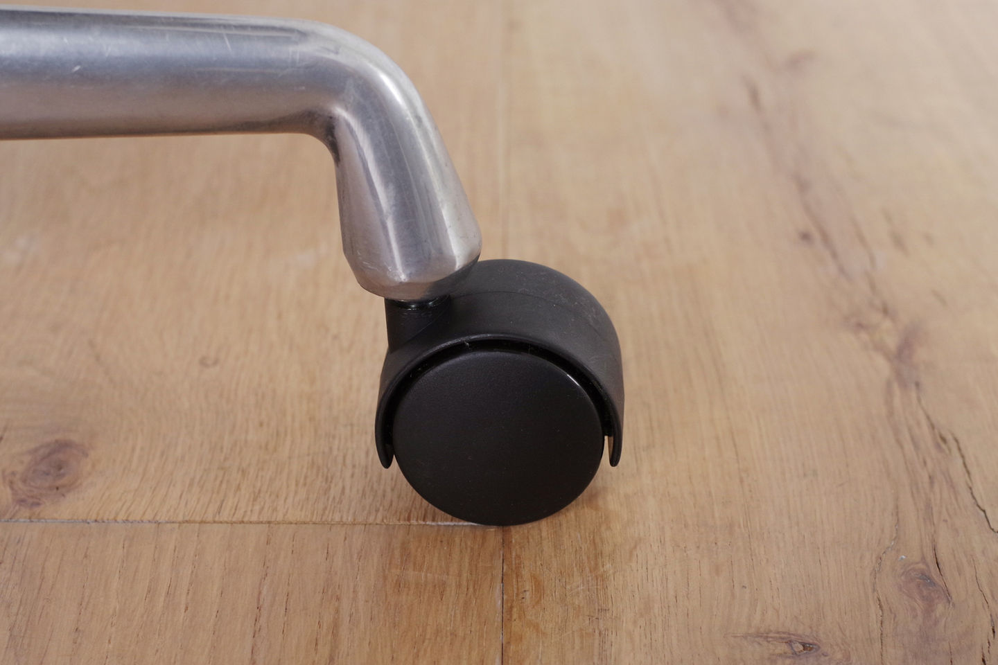 シートファブリックは新しく張り替えましたので、新品同様の状態から気持ち良くお使いいただけると思います。アームレストはオリジナルの状態ですが目立つキズのない清潔な状態を保っています。フレーム・ベース部に小キズやくすみはございますが全体的に大変綺麗なコンディションです。キャスターは新品交換済みです。