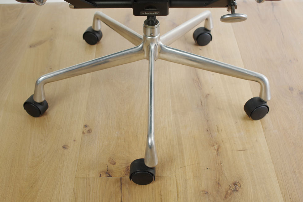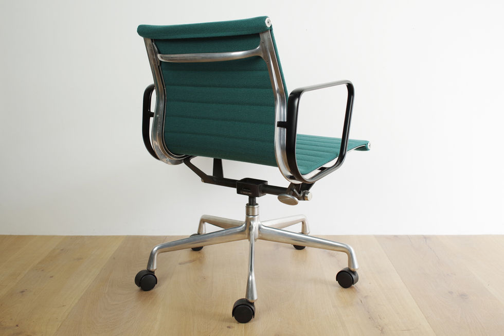 ハーマンミラー社のイームズ・アルミナムグループチェアです。ファブリック張りのローバックタイプ、5スターキャスターベースのモデルになります。