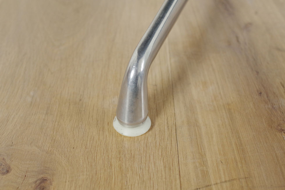 通常のエグゼクティブチェアよりもシート高を下げ、後方に傾斜をつけることでリラックスチェアとして最高の座り心地を実現しています。フレームもラウンジモデル専用の形状で、アームも幅広のものが使用されています。また、今回の個体は大変珍しいオートリターン機能付きベースで、シートが自動的に正面の位置に戻ります。