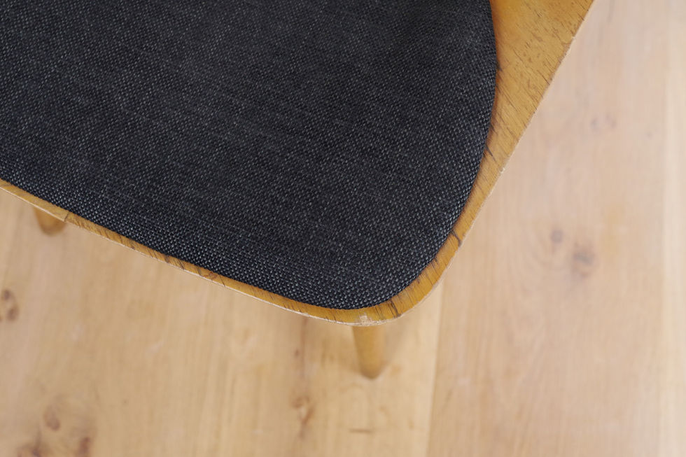 フランスで初めて成型合板を用いて製品化されたトノーチェアの改良版として誕生したモデル。座面は厚さ5mmの非常に薄い1枚のプライウッドから成型されており、非常に軽く、素材が持つ柔らかい“しなり”がこの椅子の最大の特徴です。1950年代製の初期モデルは脚部が角ばったデザインでしたが、60年代後半からは丸みを帯びたシェイプに変更されました。こちらは後期のモデルになります。