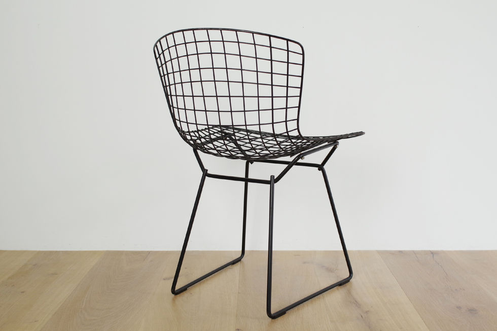 彫刻家としても活躍したハリー・ベルトイアがデザインしたサイドチェアです。Knoll社製のヴィンテージ品、ブラックワイヤーのモデルになります。