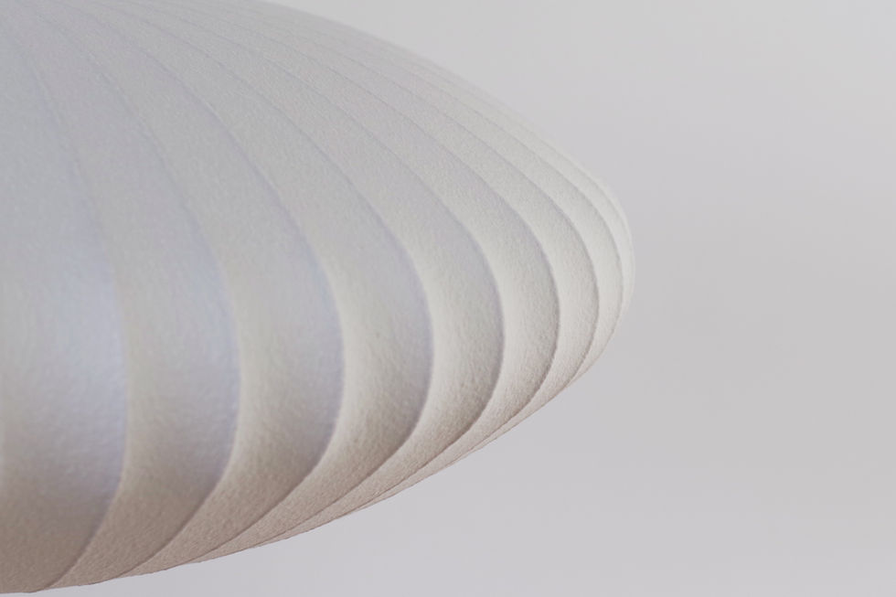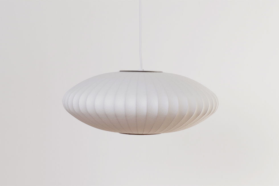 1952年にジョージ・ネルソンによってデザインされたバブルランプシリーズのフロアランプです。ハーマンミラー社製の現行品、ソーサーシェードのSサイズのモデルになります。