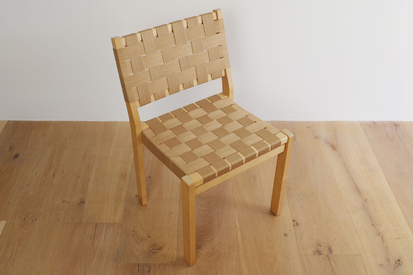 スツール60やチェア66より前の1929年にデザインされたモデル。頑丈に組み上げられたバーチ材のフレームにリネンのウェービングテープを格子状に張ることで、柔らかく体を受け止めてくれます。5脚までスタッキングすることもできます。