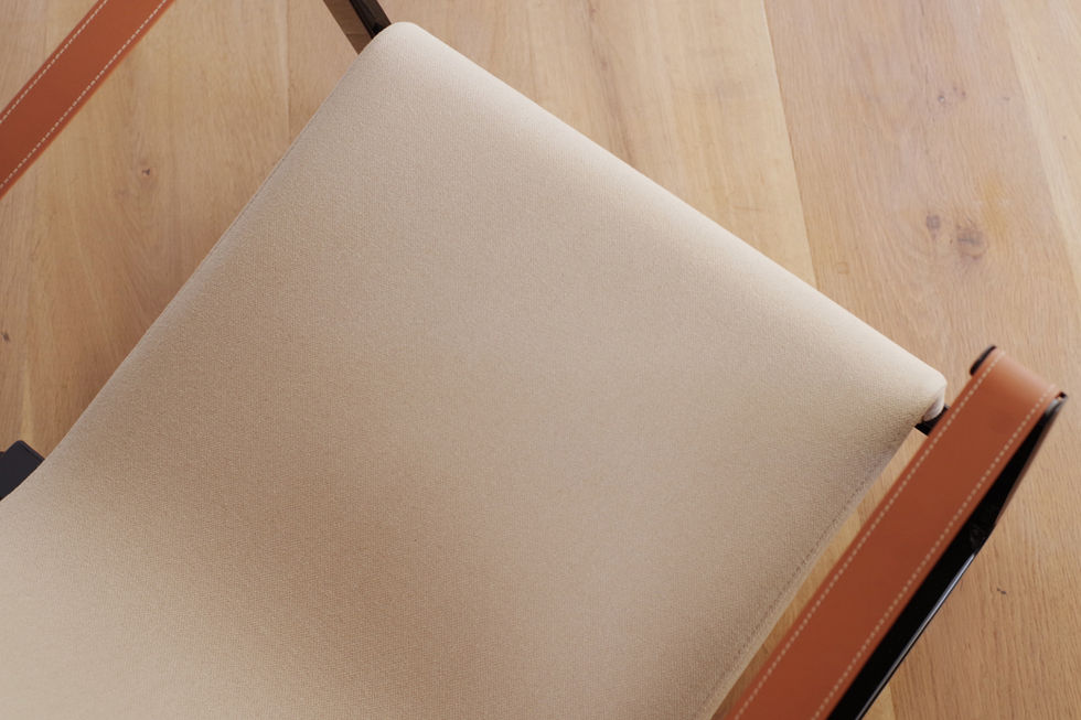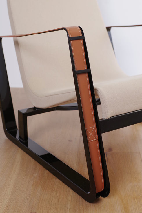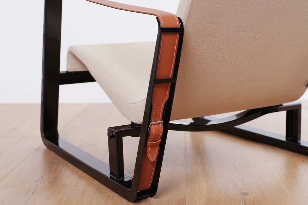 1930年にナンシーの大学都市の学生寮のための家具コンペを勝ち抜き、アトリエとして初の公共事業として製作されたシテシリーズ。その中でも最も印象的なラウンジチェアで、プルーヴェ自身も自宅で愛用していたことでも有名です。スチールフレームにレザーのアームレストが渡され、すらりと伸びるバックレストがゆったりと体を受け止めてくれます。