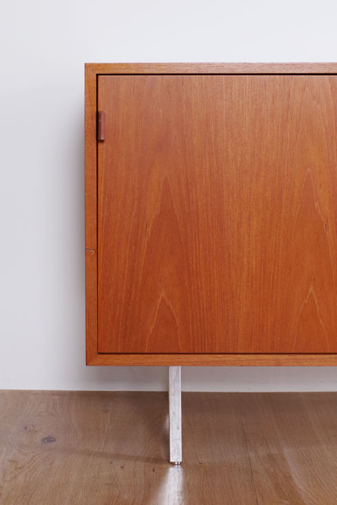1961年にデザインされたこのクレデンザシリーズは均整のとれた美しいバランスが特徴で、レザーのつまみがアクセントになっています。4つのドアはスライド式で中には可動式の棚板が計8枚設けられています。