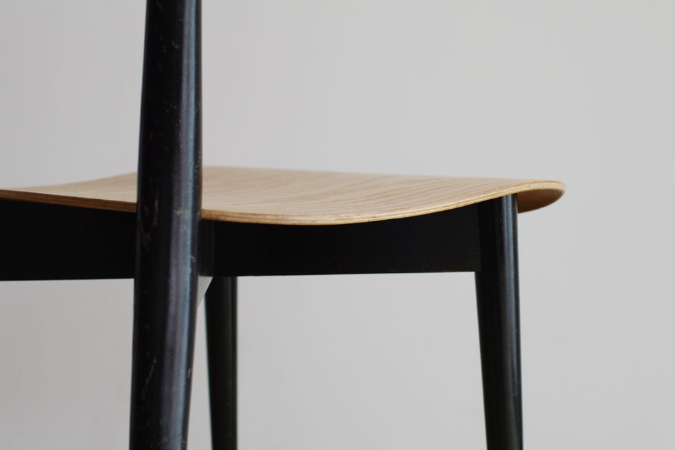 背もたれの背面に1ヵ所プライウッドの剥がれ、フレームにも小キズが目立ちますが、ヴィンテージチェアとして大変素晴らしい雰囲気です。使用に差し支えるようなぐらつきもなく、実用的にお使いいただけます。