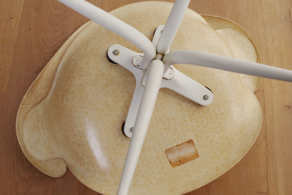 シェルに経年の日焼けによる変色は見られますが割れ欠けといったダメージはなく、ファイバーの質感も美しく大変素晴らしいコンディションを保っています。レッグも小キズはございますが雰囲気を損なうものではなく、脚先のグライズもすべて残っています。座面裏のマウントもしっかりと付いており実用的にお使いいただけます。