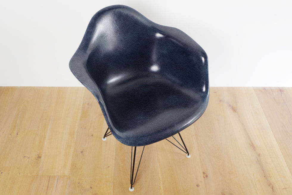 1960年代に入り豊富なカラーバリエーションが展開されたイームズ・シェルチェア。その中でもネイビーブルーは個体数が少なく、レアカラーとされています。ベースも貴重な3rdタイプのオリジナルエッフェルベースで、脚先のグライズもすべて残っています。