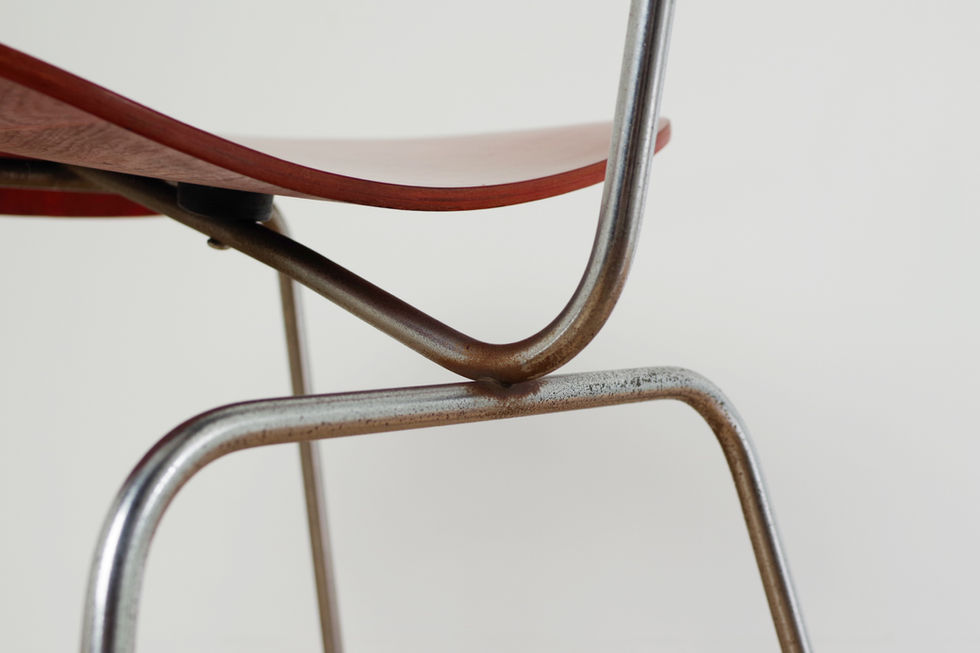 イームズ夫妻により1946年に発表され、当時はエヴァンス社が生産していましたが、すぐにハーマンミラー社が販売権を獲得、49年には生産もハーマンミラー社へと移行していきます。自然に背もたれに体重がかかる構造で、プライウッドの湾曲が体に優しく、座り心地は大変素晴らしいものです。また、こちらのレッドカラーは現存している個体が極端に少なく、世界的にも大変希少とされています。