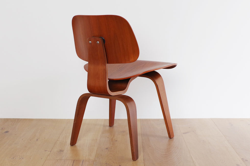 チャールズ&レイ・イームズが1945年に設計したプライウッド製ダイニングチェア「DCW」です。1940年代後期に3年間のみ生産されたエヴァンス・プロダクツ社製のモデルになります。