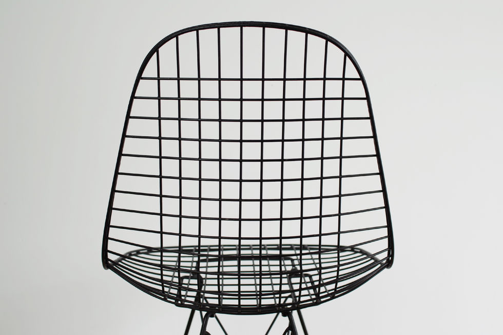 グリッド状に配置したワイヤーを立体的に成形し、エッジを2本のワイヤーで挟み込むことにより強度が確保されています。座面とベースの接合部分のワイヤーは凸型の2ndモデル、エッフェルベースも2ndモデルになります。