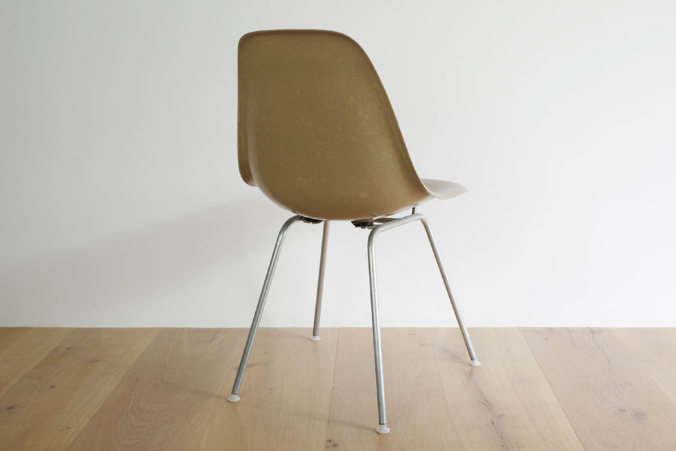 ハーマンミラー社のイームズ・サイドシェルチェアです。1970年代製のヴィンテージ品、グレージュのサイドシェルに、ジンクHベースの組み合わせです。
