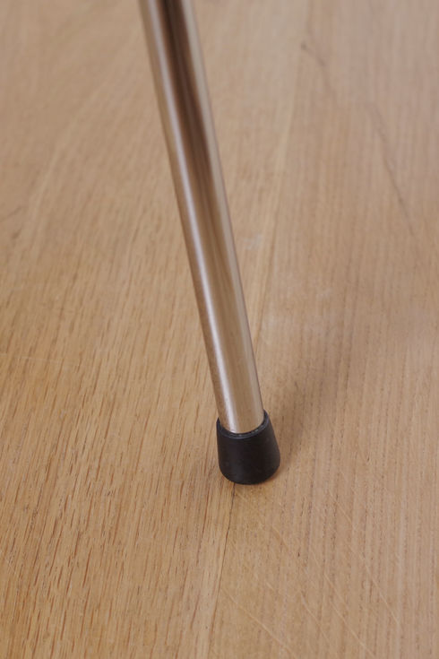 V字型のロッドで脚を支える簡素な構造ですが、ワンタッチで折りたたみができ安定感にも優れた非常に合理的な構造です。この復刻モデルはヴィトラ社が生産を担っていたため天板裏にはハーマンミラー社とヴィト ラ社の両方のラベルが確認できます。現在は廃番となってしまったため入手困難なモデルとなっています。
