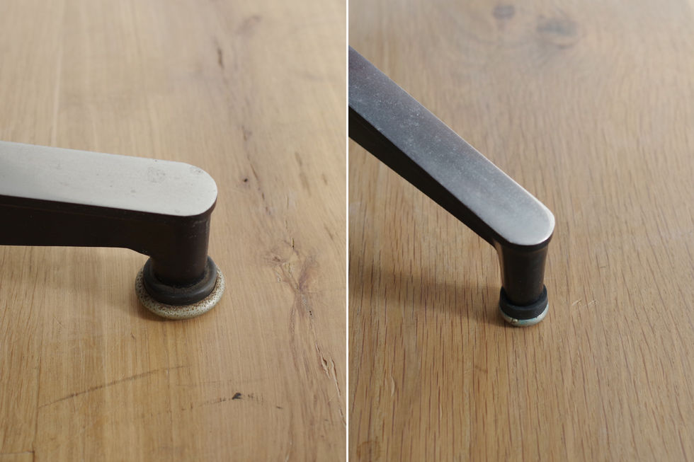 シートの本革はすべて新しく張り替えました。しっとりとした上質なブラックレザーです。シェルにも特筆すべきキズは見られず、個性的で美しい木目を楽しんでいただけると思います。クッションのヘタリも感じられずこれからも永くお使いいただけると思います。脚先のグライズやラベルも残っています。