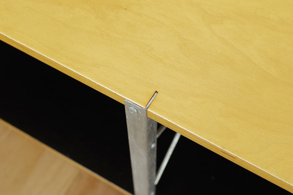 1949年に開催されたDetroit Institute of Artの展示用に製作されたものを製品化したもので、オリジナルは1950年から5年間のみハーマンミラー社で製造・販売されていました。Lアングルと積層合板の棚板、カラーパネルの組み合わせで様々なバリエーションを展開していました。こちらは同社が復刻生産を続けているモデルで、テレビ台やサイドボードとしてお使いいただけるサイズ感です。