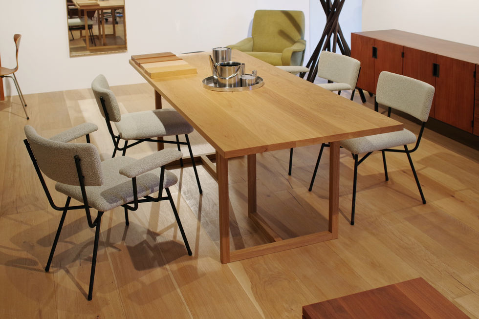 スチールフレームの造形が印象的で、気品の感じられる佇まいです。座面底にはウェービングテープが敷かれクッション性も高く、背もたれも広くとられているので、座り心地は非常に良いものです。本国では数年前から復刻もされておりますが日本国内での展開はなく、入手困難なモデルです。