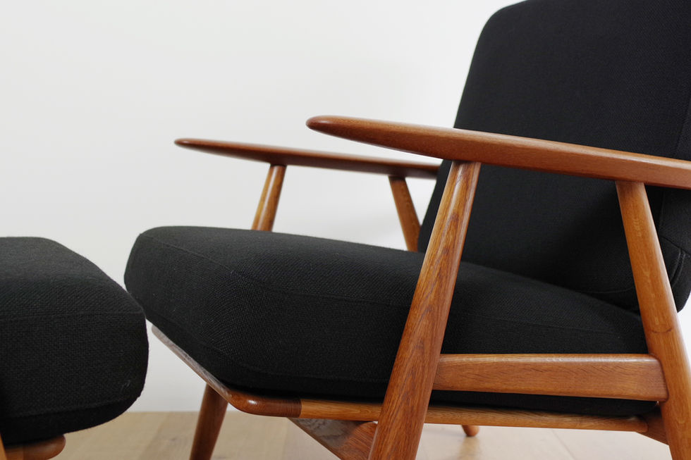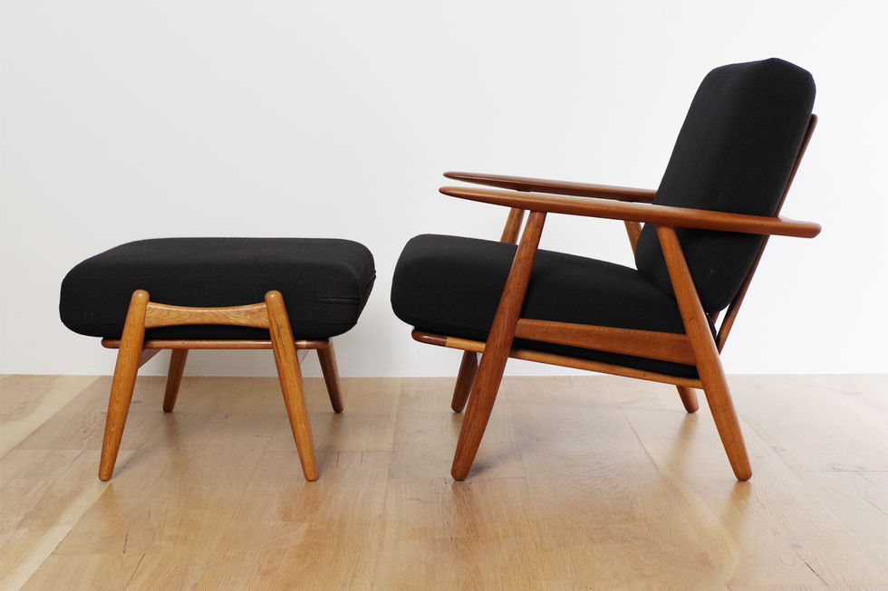 ハンス・J・ウェグナーが1955年にデザインした「GE240」のイージーチェアとオットマンのセットです。貴重なゲタマ社製のヴィンテージ品、オーク材フレームのモデルになります。