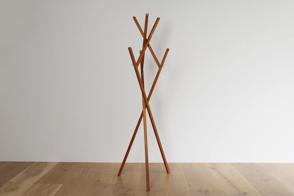 ドイツ語で「脱帽」という意味を持つコートラック。先端をフック状に加工したホワイトアッシュ材を6本組み合わせたユニークなデザインで、接合部にはアルミ製フックも備わりあらゆる衣類や小物を無造作に掛けることができます。また、女性の方でも片手で持ち運べるほど軽量ですが、荷重によって安定しますので重いコートを掛けても安心です。使わないときは束ねてコンパクトに収納することもできます。