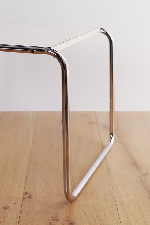 マルセル・ブロイヤーが1925年にデザインしたラッチオローテーブルです。Knoll社製の正規品ユーズド、ホワイトラミネート天板のスクエアモデルになります。