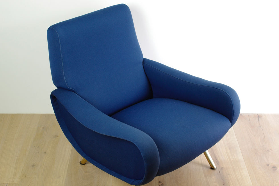 当時一般的には藁や馬毛がクッション材に用いられていたなか、イタリアのゴムメーカー・PIRELLI社の協力のもと成型ゴムとゴムベルトを家具に転用した画期的な技術で、1951年のトリエンナーレで金賞を受賞した作品。その優雅なデザインと安定した座り心地は、イタリアモダンデザインの代表と言える存在です。