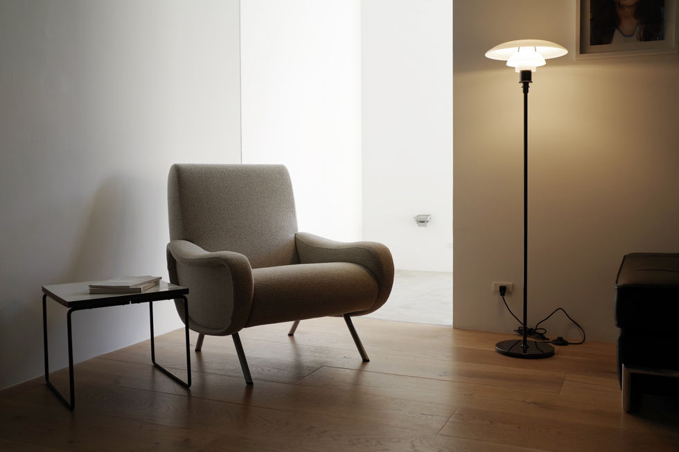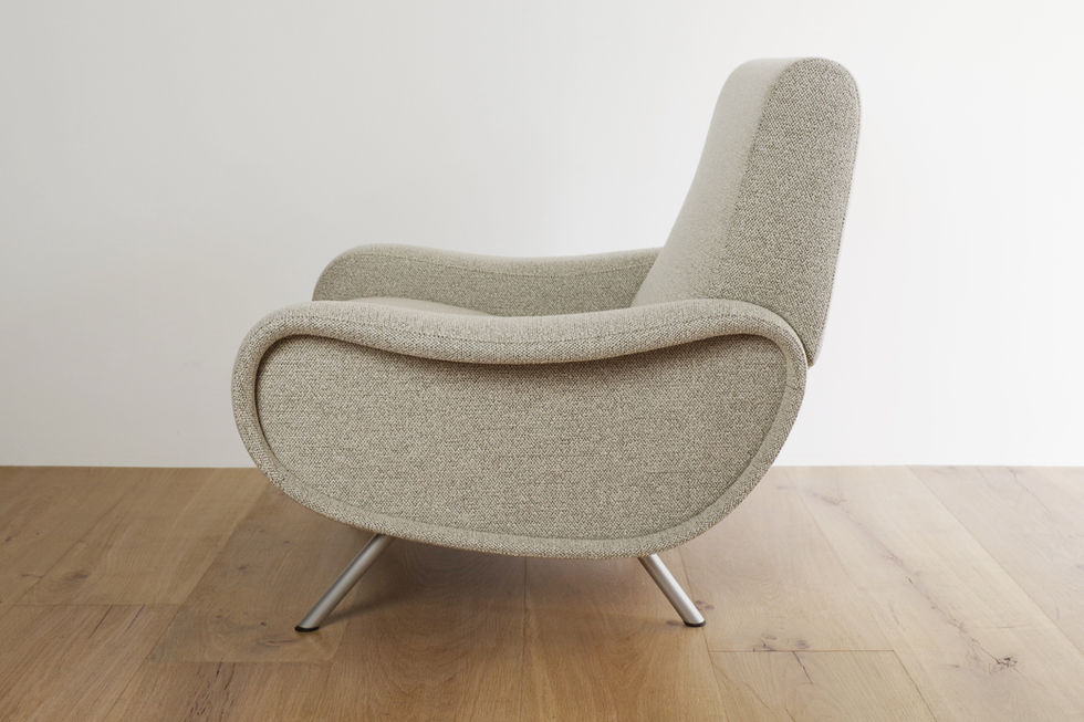当時一般的には藁や馬毛がクッション材に用いられていたなか、イタリアのゴムメーカー・PIRELLI社の協力のもと成型ゴムとゴムベルトを家具に転用した画期的な技術で、1951年のトリエンナーレで金賞を受賞した作品。その優雅なデザインと安定した座り心地は、イタリアモダンデザインの代表と言える存在です。