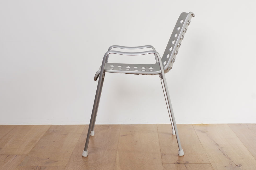 アルミニウム素材にパンチングをあけることで軽量化と水抜きの機能を両立させたガーデンチェア。1939年にスイス・チューリッヒで開催されたスイス国際博覧会の公式屋外用チェアとしても採用されました 。屋外での使用ができ6脚までスタッキングも可能です。