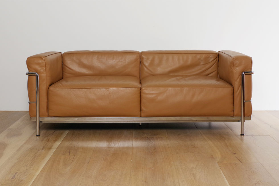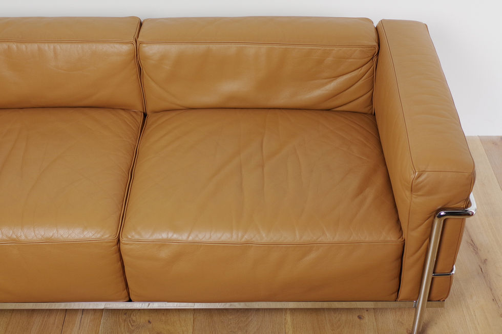 L・コルビュジエ、P・ジャンヌレ、C・ペリアンによってデザインされたソファ「LC3」です。カッシーナ社製の正規品ユーズド、現在は展開されていない貴重なキャメルブラウンレザー張りの2人掛けモデルになります。
