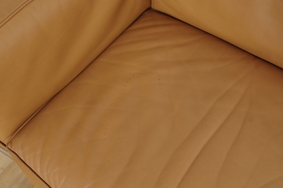 座面レザーに一部僅かな黒ずみがございますが、全体的に特筆すべきダメージや劣化のない大変清潔なコンディションです。レザークリームでメンテナンスいたしましたので本革特有の柔らかい質感とツヤを保っています。フレームにもサビやくすみは見られず、座面底のウェービングテープもしっかりとしたテンションを保っています。フレーム裏にはカッシーナ社の刻印も確認できます。