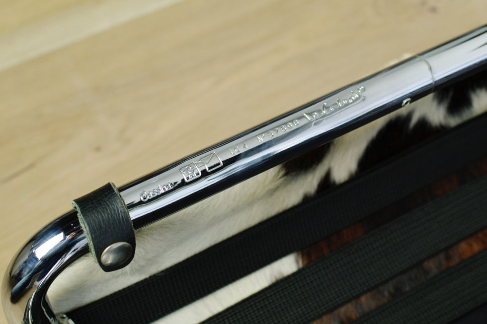 ハラコのシートは部分的に毛が薄くなっている箇所がございますが目立つものではなく、ヘッドレストも綺麗な状態で全体的に大変清潔なコンディションを保っています。フレームもサビやくすみのない大変綺麗な状態で、カッシーナ社の刻印も確認できます。ベースに小キズや若干のサビは見られますが雰囲気を損なうものではありません。