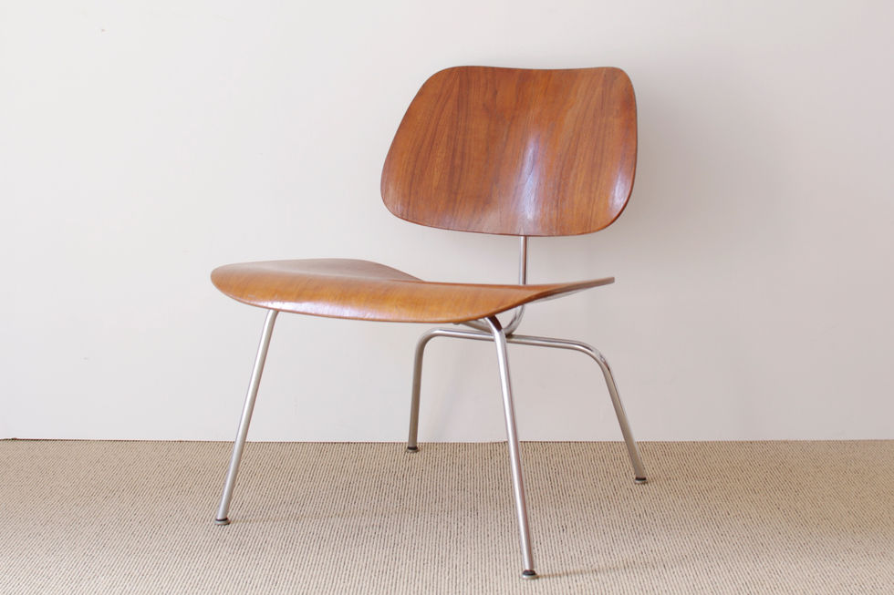 イームズ夫妻により1946年に発表され、当時はエヴァンス社が生産していましたが、すぐにハーマンミラー社が販売権を獲得、49年には生産もハーマンミラー社へと移行していきます。自然に背もたれに体重がかかる構造で、ダイニングモデルのDCMより背もたれが広く取られており、座り心地は大変素晴らしいものです。