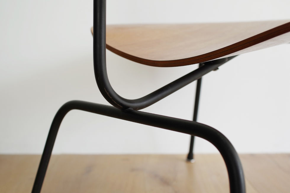 イームズ夫妻により1946年に発表され、当時はエヴァンス社が生産していましたが、すぐにハーマンミラー社が販売権を獲得、49年には生産もハーマンミラー社へと移行していきます。自然に背もたれに体重がかかる構造で、ダイニングモデルのDCMより背もたれが広く取られており、座り心地は大変素晴らしいものです。