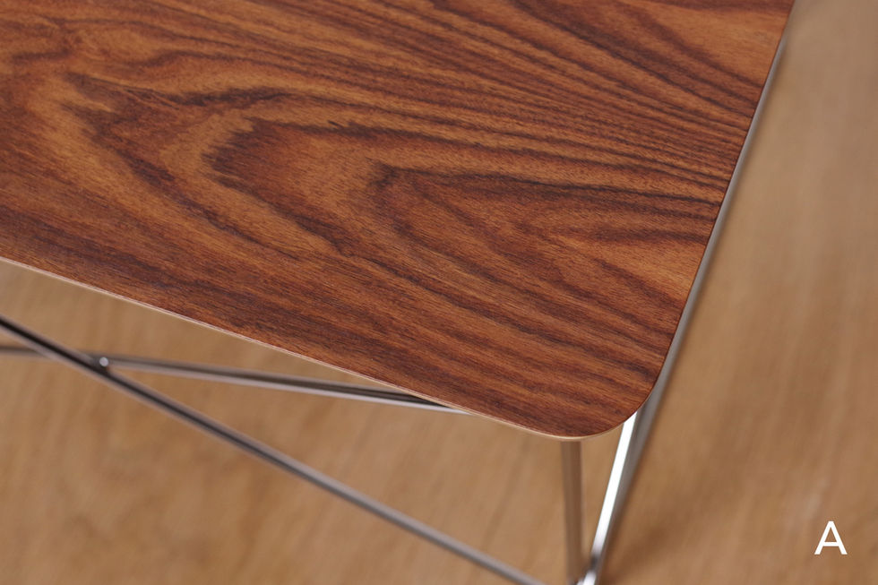 イームズの代表作のひとつ、ハーマンミラー社のワイヤーベーステーブル、通称“LTR”です。2024年製の国内正規品ユーズド、サントスパリサンダー天板×トリバレントクロームフレームのモデルになります。