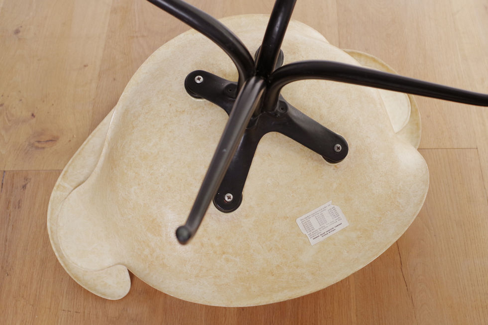 パーチメントカラー特有の経年の日焼けによる変色が見られますが、割れや欠けといったダメージはなく良好なコンディションを保っています。レッグ部も綺麗な状態で座面裏のマウントもしっかりと固定されており、実用的にお使いいただけます。