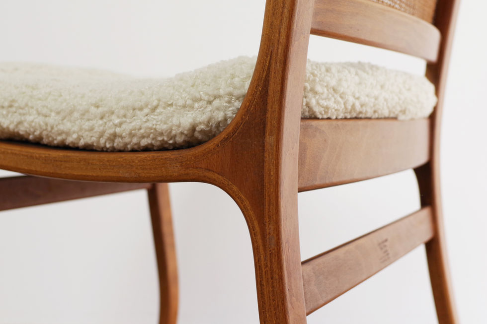 北欧を代表する家具デザイナーのひとり、ブルーノ・マットソンが天童木工のためにデザインしたミラチェアです。1980年代製のヴィンテージ品、背もたれが四ツ目編みラタン仕様の最初期モデルになります。