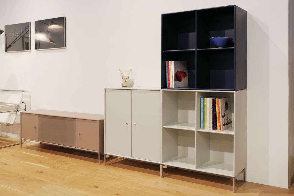 フリッツ・ハンセン社CEOだったピーター・ラッセンが「実用的で美しく、耐久性があり、無限に結合することで、様々な用途・空間に対応できる収納家具」をとこのシステムシェルフを開発し、自身でモンタナ社を設立。以降約40年に渡ってメイド・イン・デンマークにこだわり生産が続けられています。厚さ12mmのMDF板のみで構成され、均整のとれた美しいバランスと精緻な作りが特徴。36種のモジュールと42色のカラーの組み合わせで様々なバリエーションを展開しています。