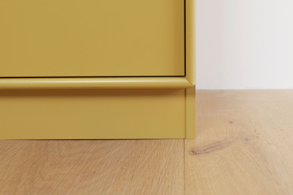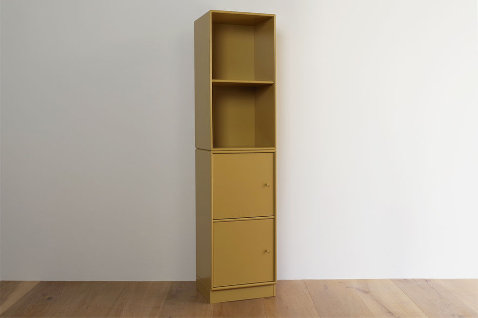 1982年に設立されたデンマーク・モンタナ社のシステムシェルフです。クミンカラー(黄土色)のオープンシェルフとキャビネットを組み合わせたセットになります。