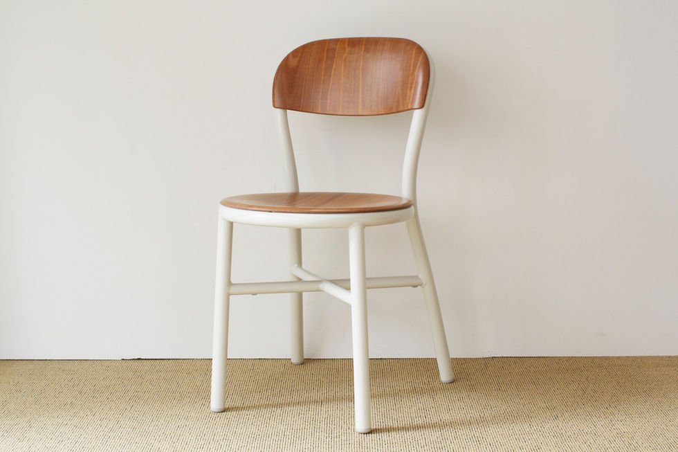 ジャスパー・モリソンが手掛けたマジス社のパイプチェアです。ホワイトカラーのフレームに、プライウッド(ライトビーチ)の座面と背もたれのモデルになります。