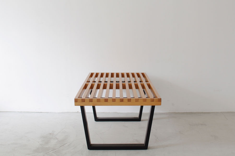 1946年に発表されたこのベンチは、ハーマンミラー社から発売された最初のネルソン作品としても有名です。当時は6種類のサイズ展開がされており、こちらは一番短い48inchのタイプになります。67年に一度生産が終了しましたが、94年から同社で復刻、現在も生産・販売されています。