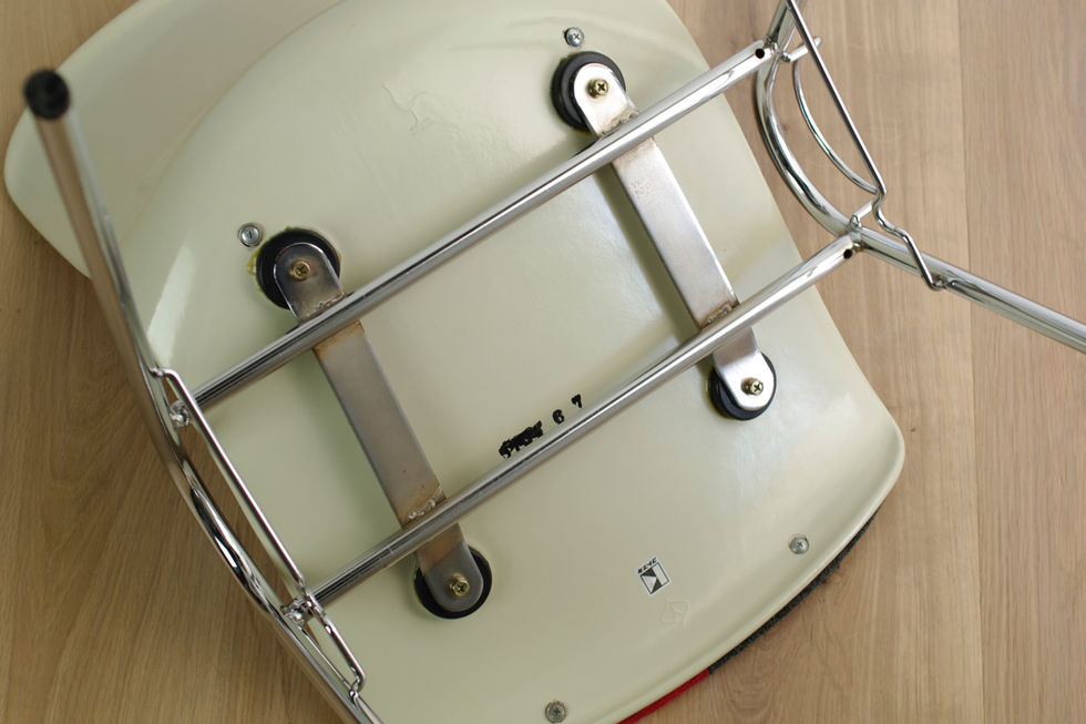 座面のファブリックは過去に張り替えられたものと思われますが、特筆すべきダメージもなく全 体的に大変綺麗なコンディションです。当時のコトブキ社のラベルも綺麗に残っています。