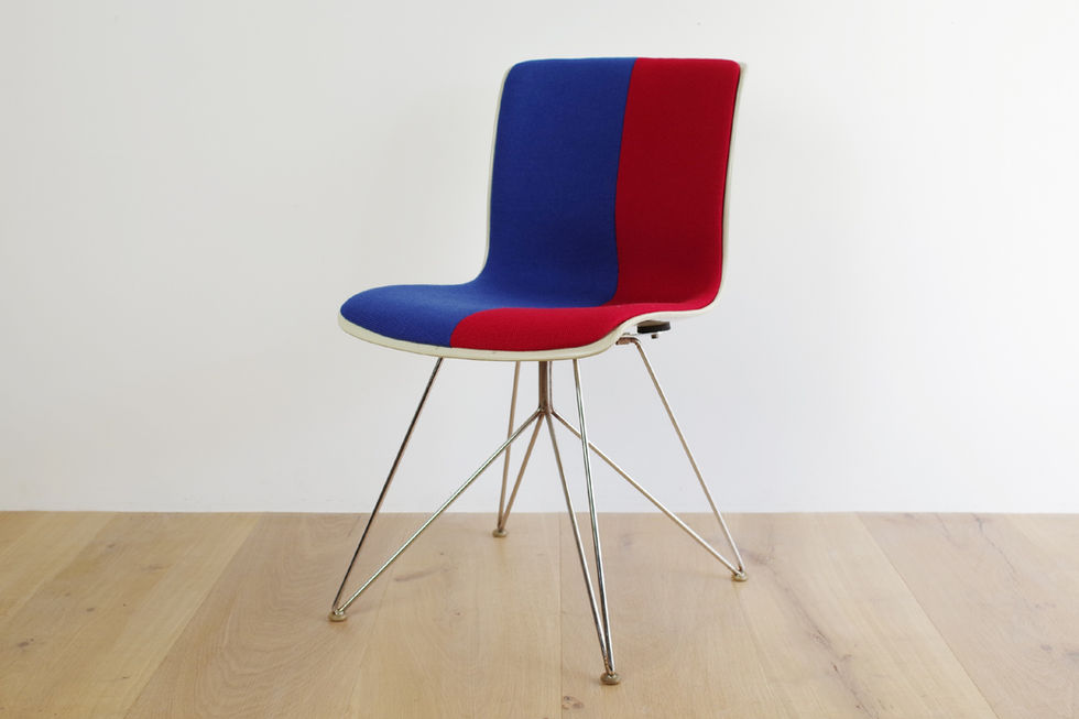 1969年に柳宗理がデザインしたコトブキ社のポリエステルサイドチェアです。こちらは1999年に限定発売されたブルー×レッドカラーのモデルになります。