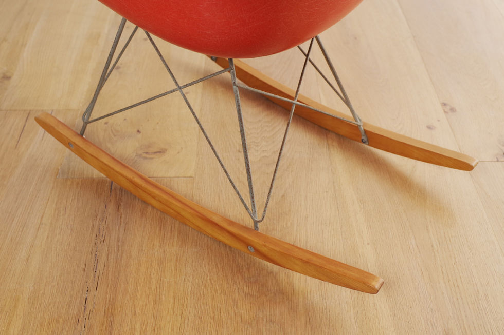 シェルはレッドオレンジカラーの3rdモデルで、2ndモデルから移行してすぐの個体になります。ジンクフレームのロッカーベースも貴重なオリジナルで、多少のサビは見られますが木製のソリも大変良好な状態です。
