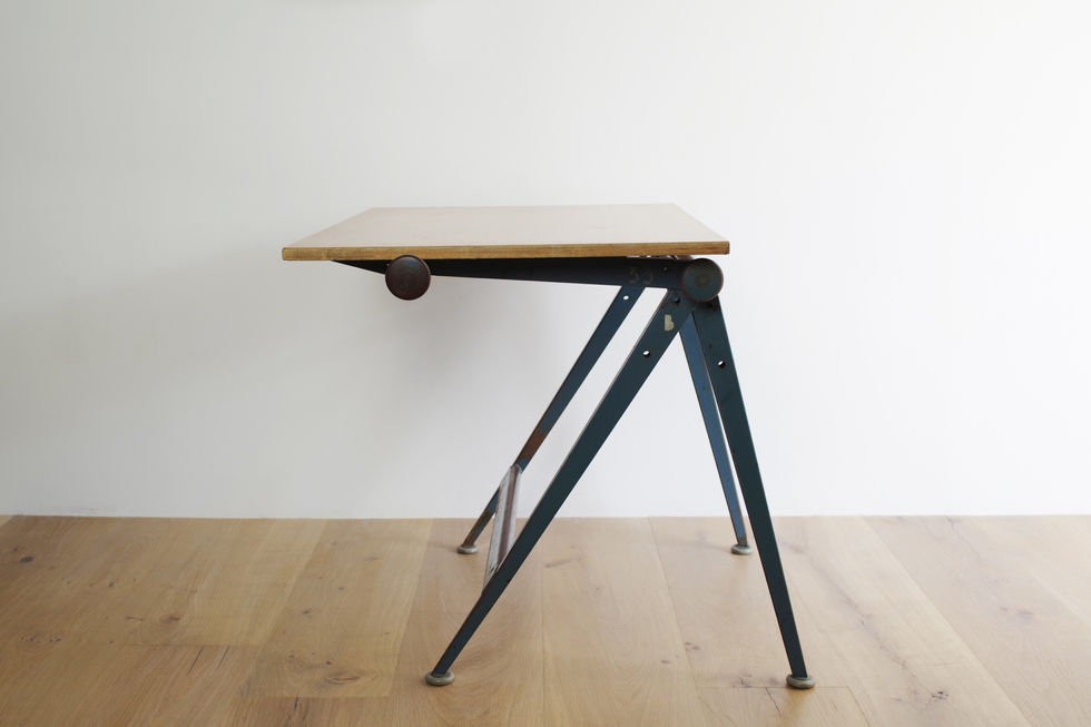 オランダ人デザイナー、フリゾ・クラマーと、オランダデザインの巨匠、ヘリット・リートフェルトの息子であるウィム・リートフェルトが共同でデザインしたドラフティングテーブルです。バーチ材の天板にネイビーフレームのモデルになります。