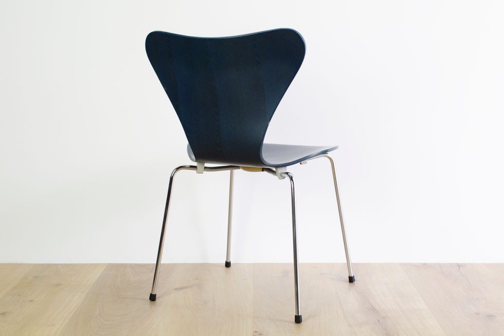 アルネ・ヤコブセンがデザインしたフリッツ・ハンセン社のセブンチェアです。ステイン仕上げのネイビーカラー、1983年製のセミヴィンテージモデルになります。