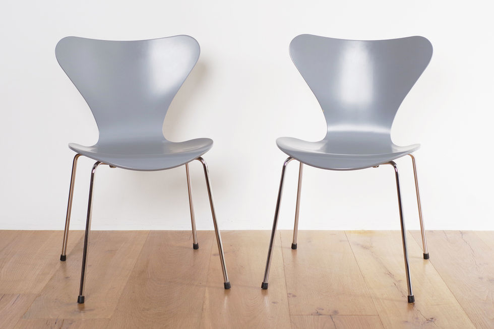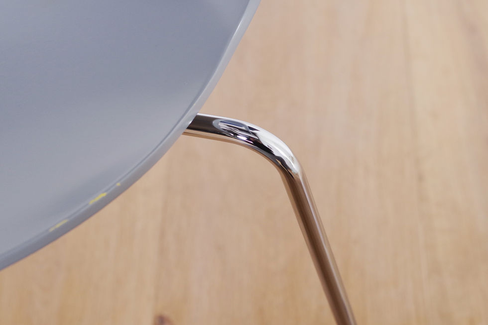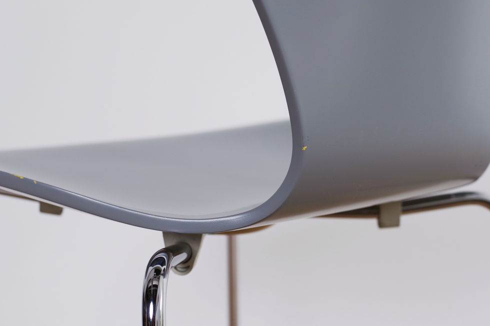 アルネ・ヤコブセンがデザインしたフリッツ・ハンセン社のセブンチェアです。国内正規品ユーズド、グレーカラー(ラッカー仕上げ)× クローム脚のモデルになります。