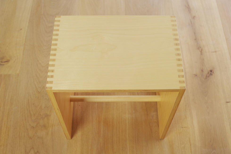 また、こちらのモデルはスイス・ヴォーンベダルフ社製のウルムスツールと違い、ビーチ材の共芯プライウッドが使用されており、サイズも若干異なります。